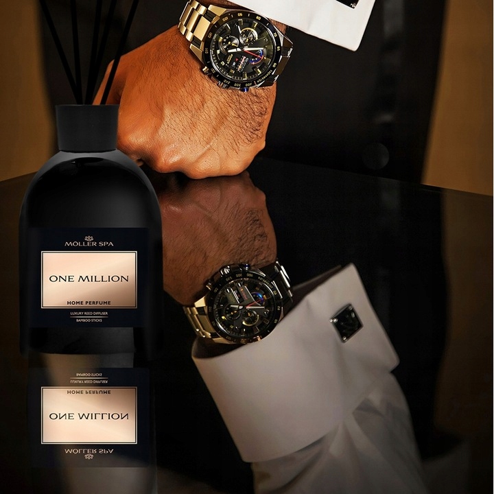 Extaz pur și senzualitate, captivant prin prospețimea și parfumul lemnos. Nucleul stimulant este construit pe un acord marin cu note de coajă de grapefruit și frunză de dafin. Un acord lemnos de chihlimbar adaugă o notă de mister. Lemnul de guaiac și paciuli sporesc nota de bază, conferind difuzorului un caracter unic.
