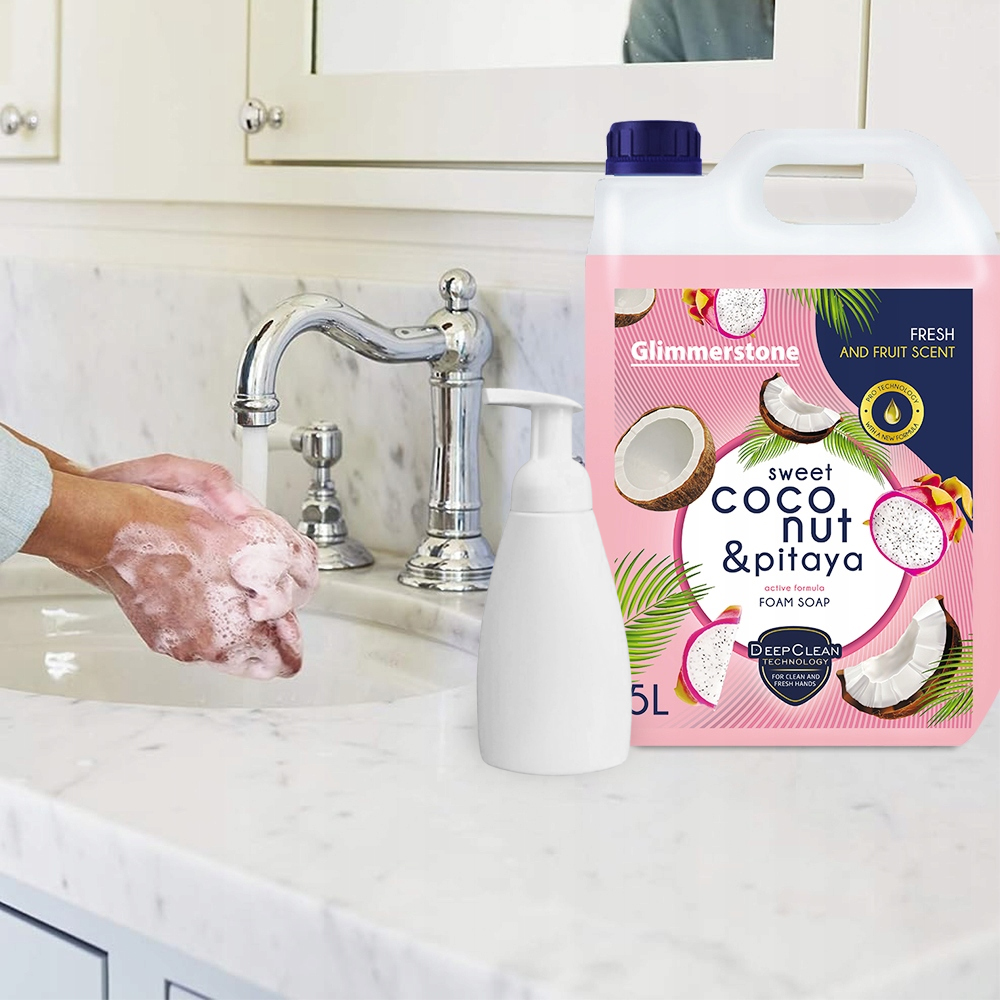 - Pregătiți dozatorul de spumă și săpunul spumant Glimmerstone COCONUT & PITAYA;